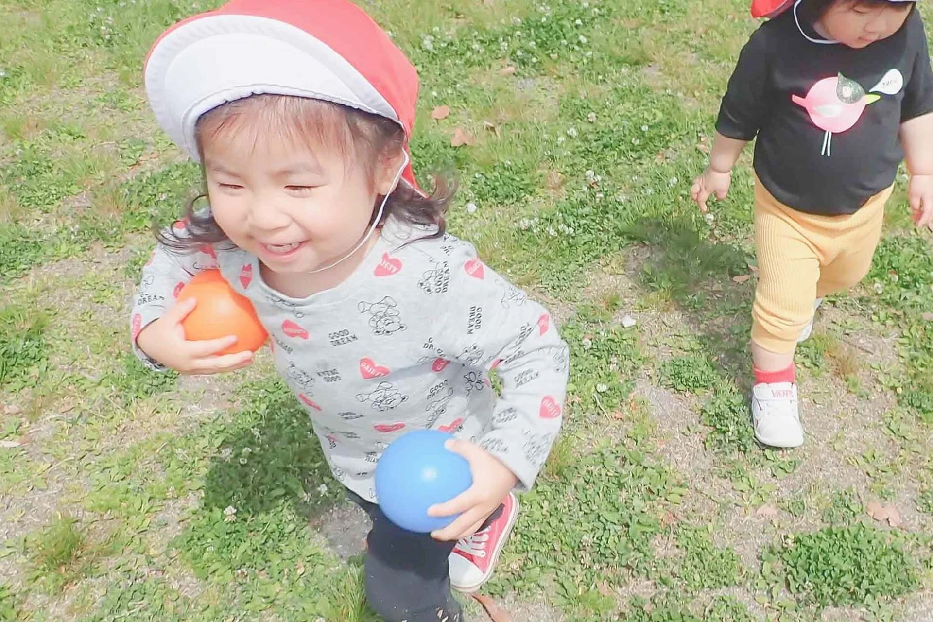 そんな子どもたちの心の中の変化・成長を大切に見守りながら、心ゆくまで自分のペースで歩いたり、思いきり体を動かしたり、のびのびと自然に親しめるようにしています。